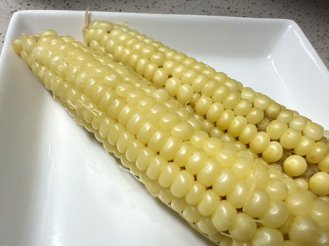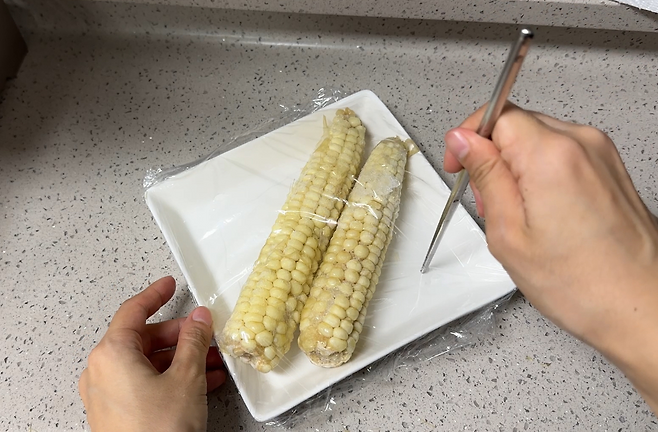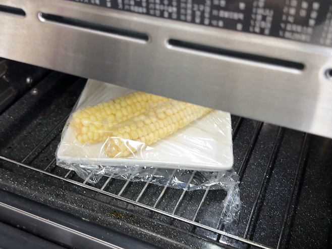 이렇게 해주시면 옥수수에 수분을 그대로 머금고 있어서 찜기에 찐 것과 비슷한 효과가 있어요!