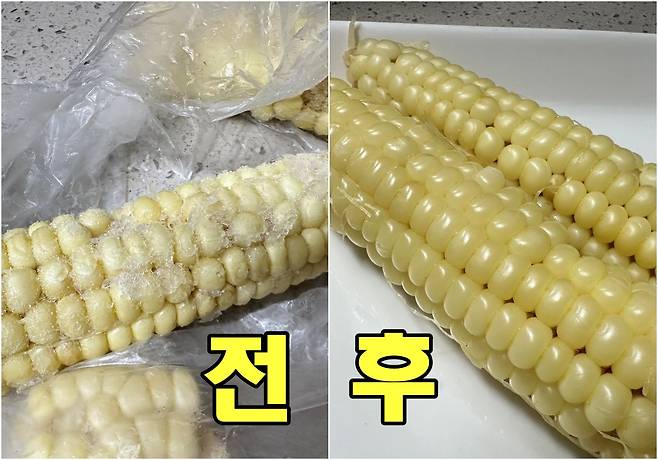 사진으로만 봐도 잘 해동된 옥수수 보이시죠?