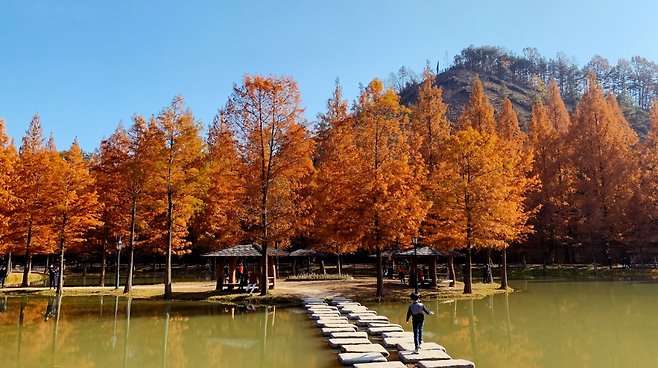 가을에 단풍을 구경하러 가기 좋은 11월 대표 여행지인 온빛자연휴양림입니다. 온빛 자연휴양림은 뷰가 아름답다고 입소문 나면서 작년에 급부상한 논산 가볼만한곳 으로 거기에 더해 2021년 12월부터 방영된 TV 드라마 '그해 우리는' 촬영지 로 알려지면서 좀 더 유명해 졌는데요. 이국적인 모습과 단풍이 절묘하게 어울려 산책만 해도 기분이 좋아지는 곳입니다.