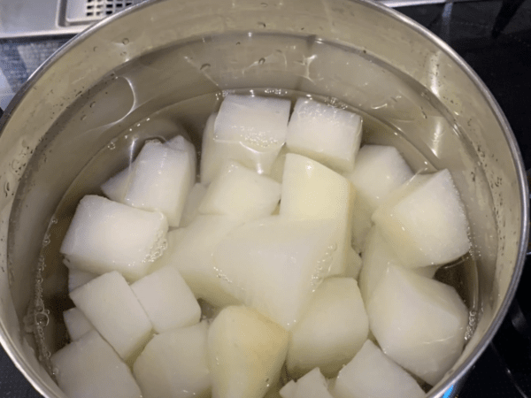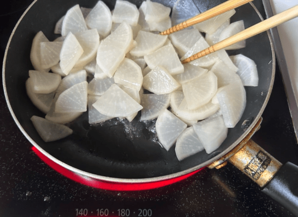 무는 약불에서 볶아야 깊은 단맛이 올라온다