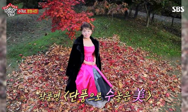 이어 핫핑크 원피스를 입고 나타난 김수미는 "어떠냐. 마음에 드냐. 섹시컨셉이다"라고 말했다. 단풍잎이 소복히 쌓인 촬영장을 본 그는 "내가 원했던게 이거다"라며 기뻐했다.