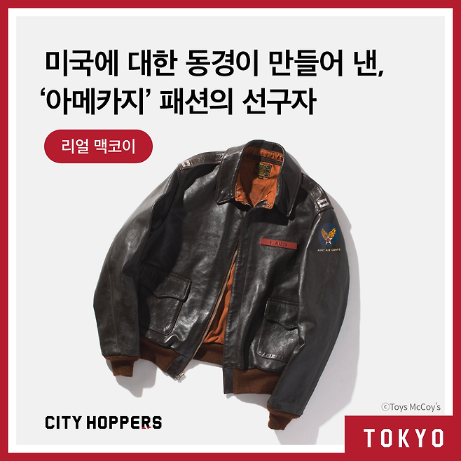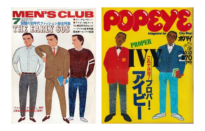 특히 패션 분야에서 미국인을 따라하는 것이 두드러졌어요. 미국의 점령이 끝나고, 여러 과정을 거쳐 경제를 회복한 일본은 점차 문화적인 발전에 눈을 돌렸죠. 이때부터 ‘Made in USA’ 카탈로그가 멋쟁이들의 필독서가 됐어요. 게다가 당시에 ‘테이크 아이비’, ‘멘즈 클럽’, ‘뽀빠이’ 같은 패션 잡지들이 생겨나면서 미국의 패션이 전파되기 시작했어요.