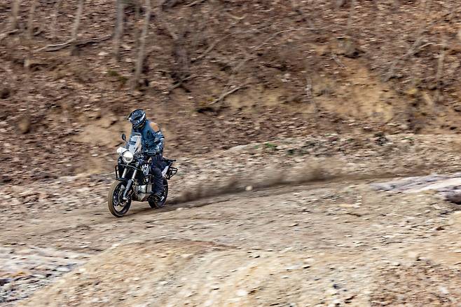 김태영 저는 온로드에서는 의외로 데저트 X를 원픽으로 꼽았어요. 나는 온로드를 타고 오프로드를 타지 못하더라도 언제든지 오프로드를 자유롭게 떠날 수 있는 성능을 갖고 있다는 자신감이 있어요. 그리고 생각보다 달릴 때 느껴지는 무게감이 가볍더라고요. 도심에서 이동하기에는 둔하게 느껴질 줄 알았는데 별다른 스트레스 없이 달렸어요. 그리고 오프로드에서는 BMW 모토라드 F 850 GS를 꼽았습니다. 저는 오프로드 경험이 많지 않기 때문에 스로틀을 과하게 열거나 슬라이딩을 시키면서 달리지 못해요. 그런 기준으로 봤을 때 예상할 수 없는 오프로드 코스에서 끝까지 넘어지지 않고 목적지로 데려다줄 모델이 무엇이냐는 관점으로 봤어요. 라이더가 뭔가 하려고 할 때 바이크가 한 번 정돈해서 움직이는 느낌이랄까요.