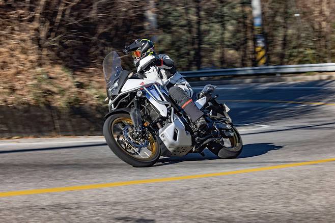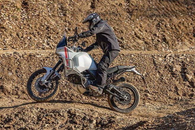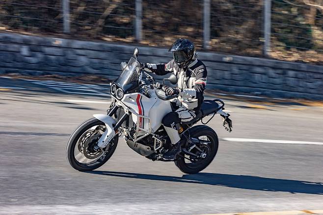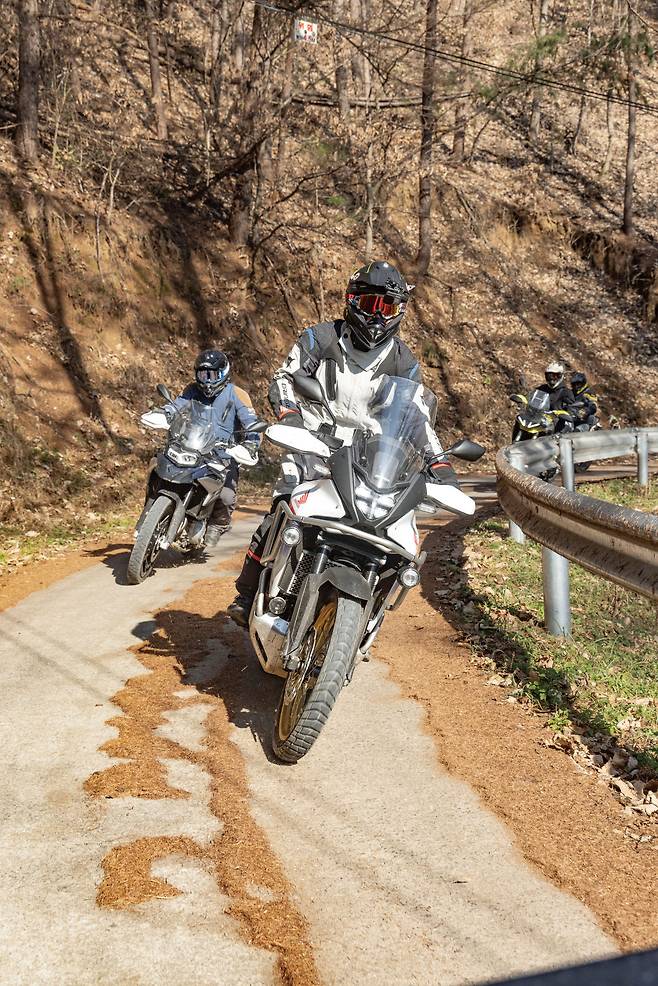 박지훈 지상고가 굉장히 높은 바이크임에도 불구하고 엔진 무게 중심 자체가 좀 낮게 설정이 돼 있어서 온로드에서 정말 안정적이었어요. 그리고 확실히 이 테스트스트레타 엔진은 지금 미들급 중에서 가장 강력한 엔진이 아닌가 싶어요. 다만 오프로드에서 조금 아쉬웠던 점은 무겁다는 거죠. 생각보다 무거워서 이게 미들급이 맞나 싶은 그런 느낌이 있었어요.
