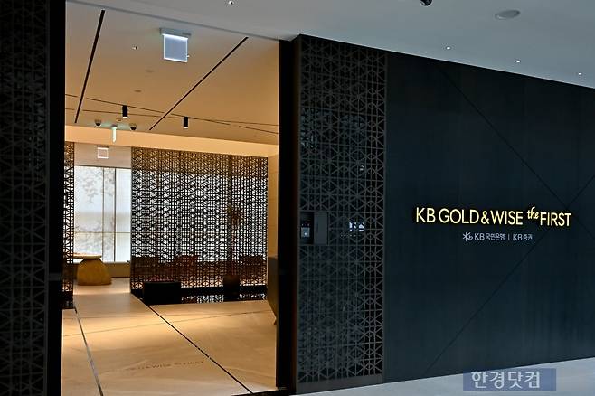 1, 2층과 4, 5층이 증권가의 경쟁이라면 3층은 KB금융의 무대다. KB국민은행은 원베일리 단지에 최상위 고객 자산관리센터인 ‘KB골드앤와이즈 더퍼스트’ 2호점을 열었다. 3층 매장의 절반을 차지할 정도로 규모가 크다.