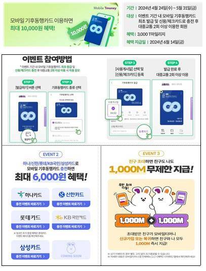 다양한 시민 참여 이벤트도 진행된다. 티머니와 카드사(KB국민, 롯데, 삼성, 신한, 하나)들은 이날부터 다음 달 31일까지 신용·체크카드로 모바일 기후동행카드를 충전하는 고객에게 최대 1만원의 혜택을 제공한다.