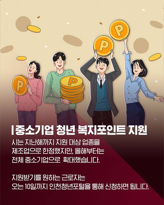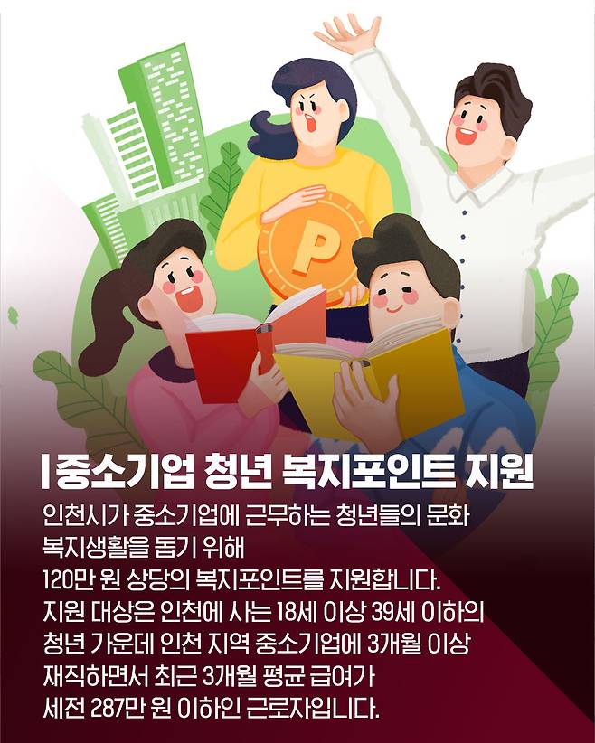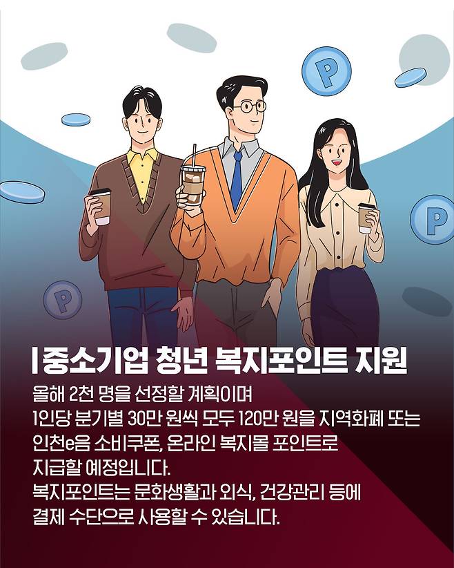 #인천시 #청년 #근로자 #노동자 #복지포인트 #포인트 #복지 #중소기업 #혜택 #문화 #외식 #병원 #생활비 #자치행정 #지역화폐 #쿠폰 #바우처 #지원금