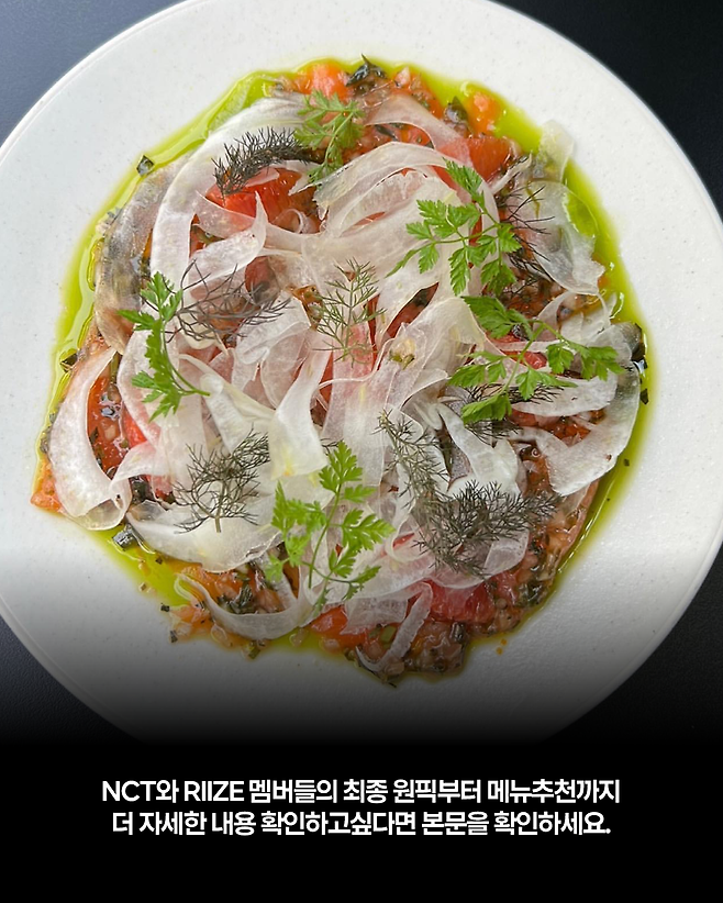 멤버들은 새우와 피스타치오 더해 눅진한 맛 자랑하는 '감베로니'와 허브소사가 곁들여진 부드러운 돼지고기 스테이크 '이베리코'로 시작해 또리와 앤톤이 픽한 매콤 스파게티 '아마트리치아나', 입맛 돋우는 '부라타 카프레제', '비스테까'까지 많은 메뉴를 맛본 NCT와 라이즈 멤버들.