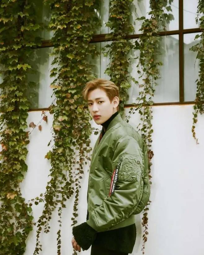 첫 번째 룩은 카키색 항공 점퍼를 중심으로 한 스타일이다. 뱀뱀이 착용한 점퍼는 알파인더스트리(Alpha Industries)의 대표 모델 ‘MA-1 레귤러’로, 항공복의 전통을 이어온 아이템이다.