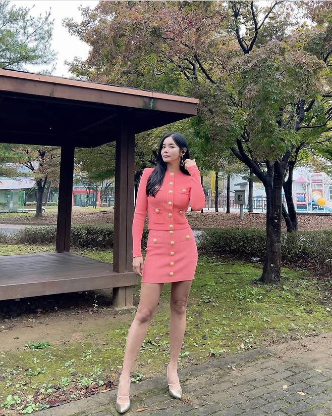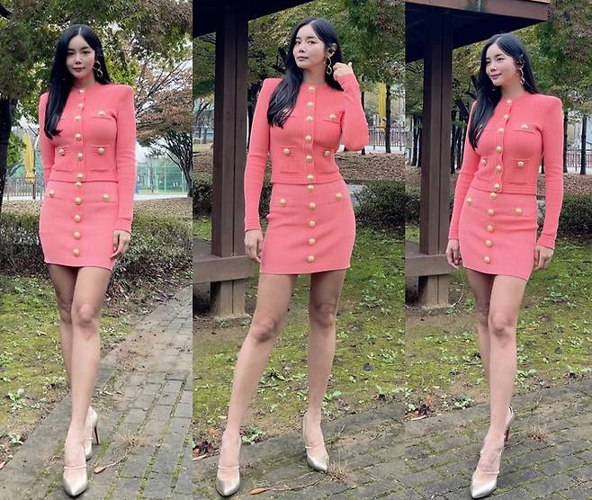 조정민이 강렬한 핫핑크 미니 셋업으로 고혹적인 매력을 뽐냈습니다.
