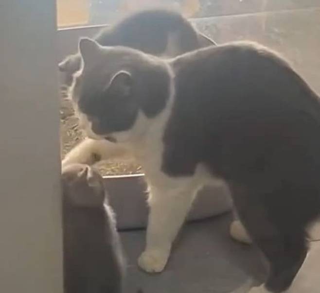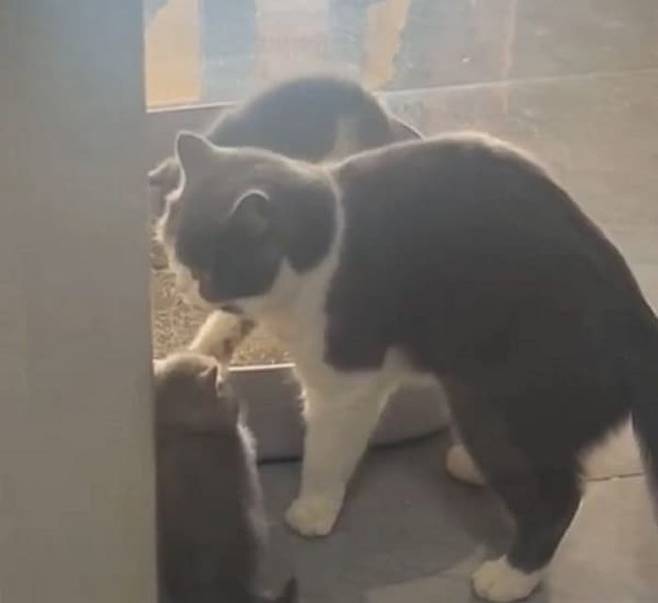 엄마 고양이의 시범이 끝나자 아기 고양이들은 기다렸다는 듯이 엄마 고양이가 한 행동을 똑같이 따라하는 것이었죠.