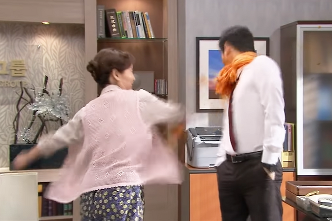 해당 장면은 여자 주인공의 엄마(이효춘 분)가 막말을 서슴지 않는 사위(원기준 분)를 향해 비닐봉지에서 갓 꺼낸 김치로 싸대기를 치는 과정에서 만들어졌다.
