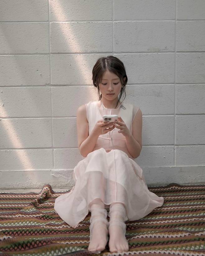 화이트 슬리브리스 원피스 하나만으로도 충분한 존재감을 발휘하고 있다. 깔끔한 실루엣과 단순한 디자인으로 미니멀 패션의 진수를 보여주며, 자연광 아래에서 더욱 돋보이는 청순한 매력을 연출하고 있다.