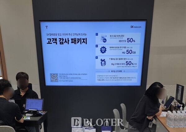 박대학 SKT대리점협의회 부회장은 <블로터>와의 통화에서 "위약금 면제가 14일까지 적용되니 아직은 조금 더 관망해야 할 것 같다"며 "특히 SKT는 온 가족이 결합으로 묶여 있거나 장기가입한 고객이 많아 다른 통신사로 넘어가려는 경우가 적다"고 설명했다. 이어 "현재 고객감사 패키지 등의 혜택을 포스터와 현장대응을 통해 고객들에게 안내하고 있다"며 "기존 고객들에게도 혜택을 받을 수 있다는 것을 적극적으로 설명하고 있다"고 덧붙였다.