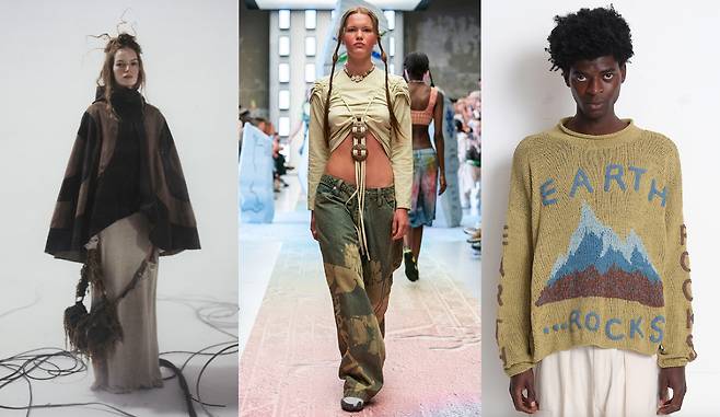 스토리엠에프지가 시작한지 10년이된 지금, 사람들은 지속 가능성하고 윤리적인 삶의 방식에 주의를 기울이고 있다. 과거에 에콜로지 신봉자들만 관심을 보이던 패션은 이제 인기다. 초포바 로위나(Chopova Lowena)의 플리츠 스커트는 팬들 사이에서 열렬한 지지를 얻었다. (스코틀랜드의 킬트와 불가리아 민속 의상에서 영감받은) 스타일 그 자체 덕도 있지만, 리사이클 패브릭을 쓰고 여성 창작자를 응원하는 브랜드의 가치관 때문이기도 하다. 코펜하겐 기반 브랜드 솔리튜드 스튜디오(Solitude Studios)는 요정이 떠오르는 해조류 같은 가방과 중간계에서 입을 듯한 셔츠로 인기다. 이들 제품은 (다소 미래적인 공정을 거치긴 하지만) 자연에 바탕을 두며, 실험적으로 가공된 천연 섬유로 만들어졌다. 솔리튜드 스튜디오의 2023년 가을-겨울 컬렉션의 제목은 ‘WoodWideWeb’이다. 브랜드 공동 창립자인 요나스 세이드 감말 브룬(Jonas Sayed Gammal Bruun)은 “곰팡이의 네트워크와 인터넷의 평행 이론을 묘사했다”고 했다. 굉장히 기술이교적(Technopagan)인 말이다.