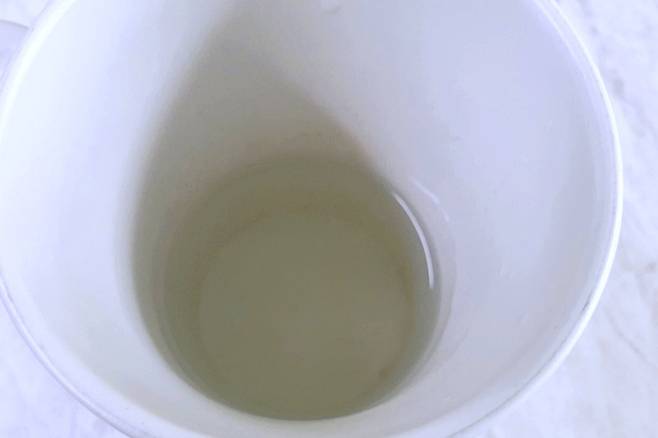 두 번째 복구법은 따뜻한 물을 활용하는 건데요. 일단 머그컵에 따뜻한 물을 반쯤 채워주세요