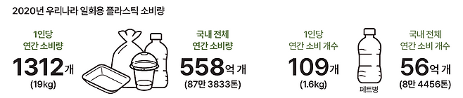 매년 버려지는 페트병의 양은 천문학적입니다. 그린피스가 발간한 ‘플라스틱 대한민국 2.0 보고서’에 따르면 2020년 국내에서 버려진 페트병은 56억 개로 8만 4000여 톤에 달합니다. 병당 지름을 10㎝로 가정해 세워놓으면 지구를 14바퀴 돌 수 있는 양입니다.
