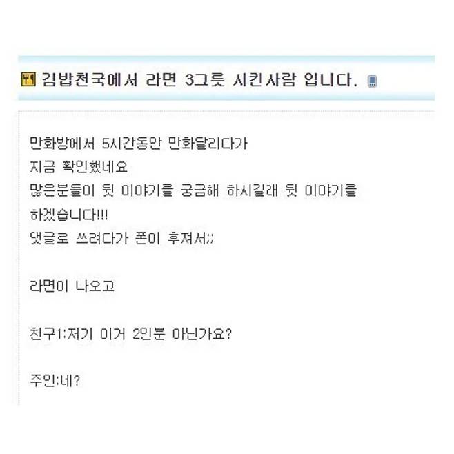 "김밥천국에 라면3개 시키자 벌어진 일"
