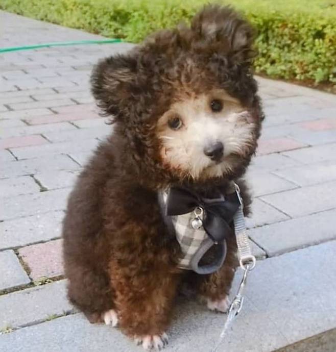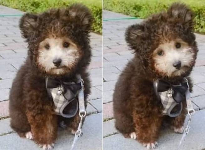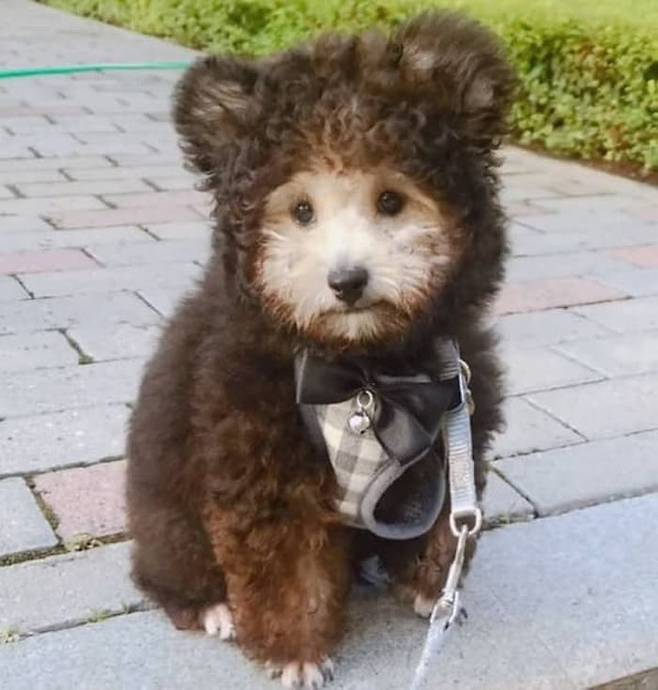 공개된 사진 속에는 누가 봐도 곰돌이 옷을 입은 듯한 강아지 모습이 떡하니 담겨 있었습니다. 그런데 곰돌이 옷이 아닌 진짜 털이라고 하는데요. 믿어지십니까.