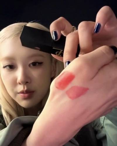 블랙핑크 로제 역시, 차분하고 부드러운 톤을 지녀 화려한 글리터보다는 은은한 펄이 느껴지는 쉬어 텍스처를 선택했는데요. 보송한 질감을 지닌 립 제품을 베이스로 깔고, 자연스러운 광택감이 느껴지는 글로시 틴트를 얇게 발라 포인트를 더해주었습니다. 이는 가을 뮤트가 지닌 특유의 우아함을 배가시켜 주는 팁 중의 팁!