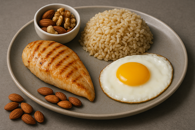 닭가슴살, 현미밥, 달걀, 견과류 등 기본 식재료 위주로 꾸며진 이 식단은 단순한 체중 감량을 넘어 건강한 다이어트를 위한 완성도 높은 루틴으로 평가받고 있어요.