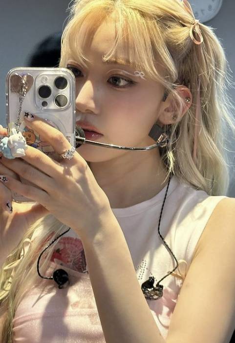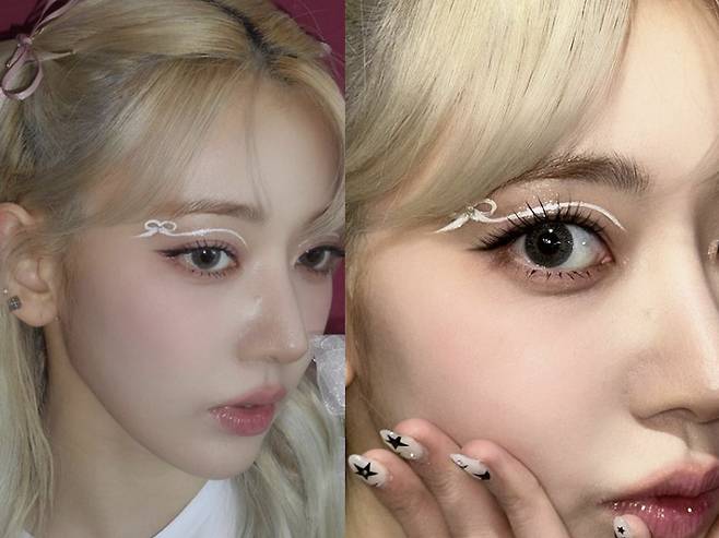 르세라핌 사쿠라가 리본 아이 메이크업을 선보였다.