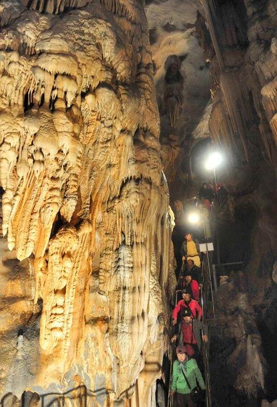 동굴 내에서 물이 떨어지고 있어 미끄럼이 적은 신발 착용을 권장하는데요. 동굴 구석구석을 탐험할 수 있는 탐험로는 계단이 많아 보행이 불편한 분들에게는 추천하지 않습니다. 동굴의 수직 통로에는 회전형 계단이 설치되어 있는데요. 자연 한가운데의 인공 조형물이 신비롭고도 웅장하게 보입니다.