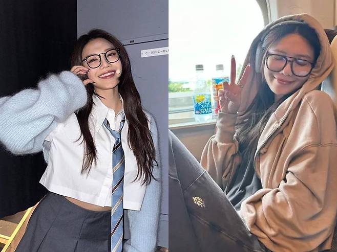 안유진은 다양한 뿔테안경으로 긱시크 패션을 선보여 왔다. 짙은 색상의 뿔테안경부터 투명한 뿔테안경까지 안경으로 포인트를 줬다. 체크 코트, 무늬 카디건 등 촌스러운듯 괴짜스러운 패션에 다채로운 안경이 시크함을 완성하고 있다.