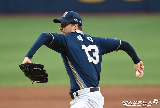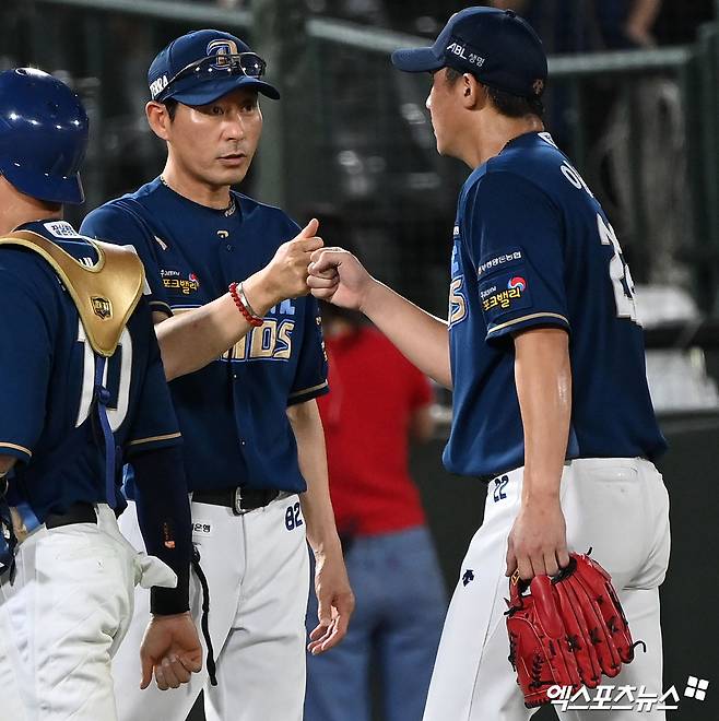 두산은 페디가 내려간 이후에도 좀처럼 반전을 만들지 못했다. 7회말 페디에게 마운드를 이어받은 김영규 상대 로하스가 우전 2루타로 출루했고, 투수가 류진욱으로 바뀐 뒤 NC의 사인 미스로 포수 견제구가 그대로 외야로 빠지며 로하스가 3루까지 갔지만 강승호가 2루수 땅볼, 박준영이 삼진으로 돌아서 득점에 실패했다.