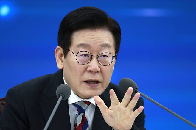 [이재명 대통령이 18일 서울 용산구 국방부에서 열린 국방부·국가보훈부 업무보고에서 발언하고 있다. (대통령실통신사진기자단=연합뉴스)]