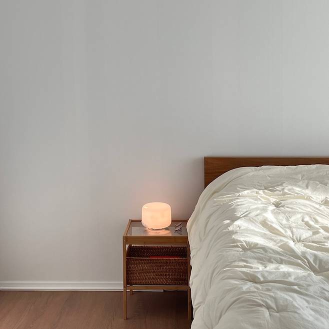 조명은 은은한 느낌의 조명을 뒀습니다. 눈이 너무 부시지 않아서 잠들기 전에 켜기 딱 좋아요.