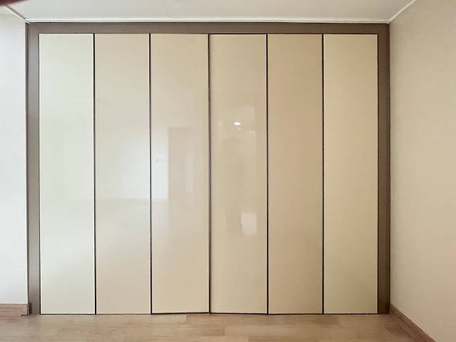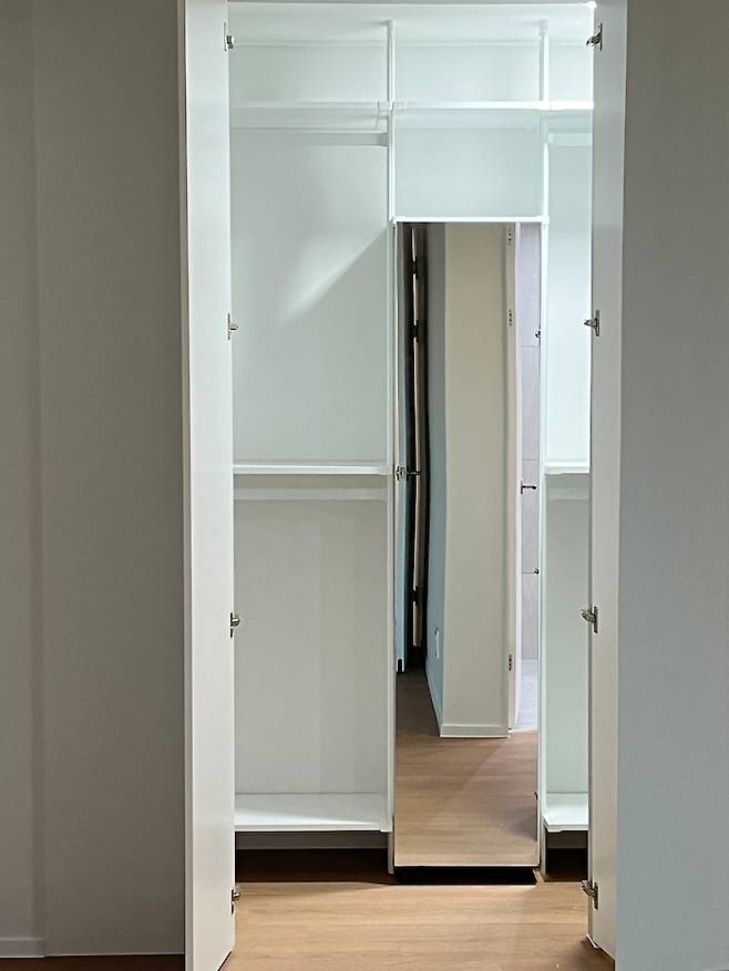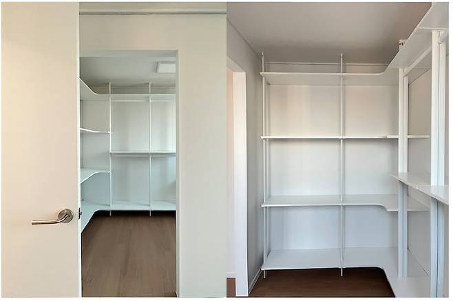 가벽 안쪽은 시스템 장을 설치하여 창고 겸 드레스룸으로 사용하고 있습니다.