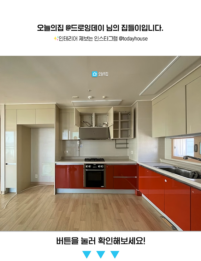 인테리어를 하고 티가 제일 많이 나는 곳이 주방과 화장실인데 주방 구조를 변경하는 것은 큰 공사이고 큰 공사는 비용이 그만큼 많이 들고 하자도 그만큼 나올 수 있기 때문에 주방의 기존 구조(후드, 수도 위치)는 건들지 않고 효율적인 동선과 아름다움 그리고 비용 모두를 적절한 선에서 계획했습니다.