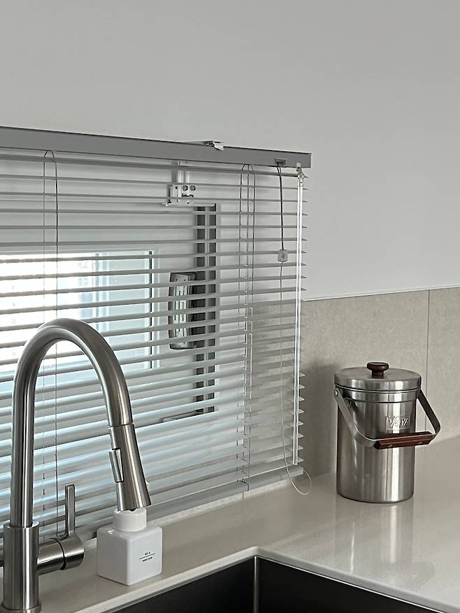 전면에 어정쩡한 작은 창이 거슬렸는데 블라인드를 달았더니 더 카페 분위기가 나는 거 같아서 만족스러워요 :)