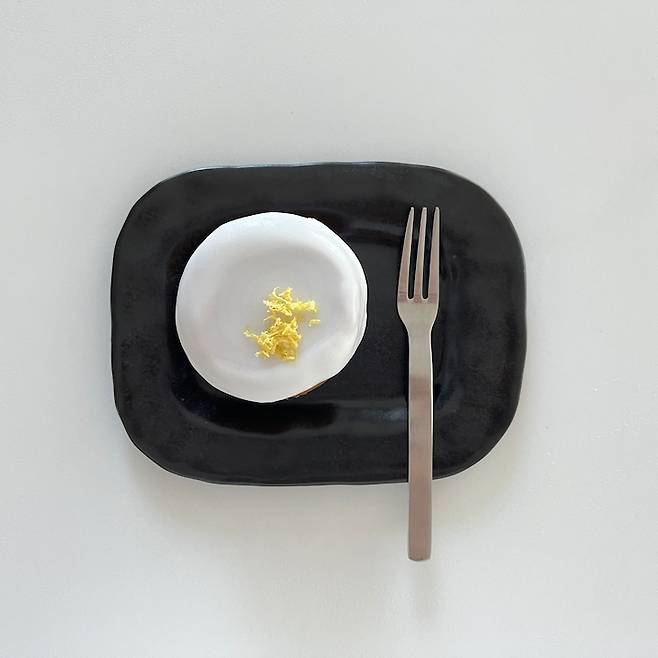 베이킹을 좋아하는 한스방은 아일랜드 테이블에서 주로 베이킹을 해요. 사진 속 디저트는 한스방이 직접 만든 디저트에요. 예쁜 그릇에 먹으면 더 맛있는 거 같아서 예쁜 그릇은 보면 하나씩 사 모으고 있습니다. 이 그릇은 친구에게 선물 받은 나혜 세라믹스 접시입니다. 손 느낌이 느껴지는 거 같아서 애정하는 그릇이에요.