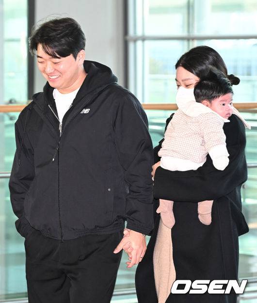 고우석, 아내 이가현이 출국장으로 향하고 있다. 2024.02.09 / ksl0919@osen.co.kr