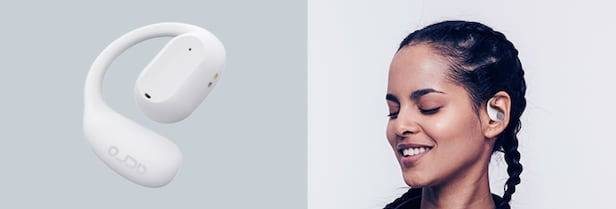 격렬한 운동을 할 때도 불편함 없이 착용할 수 있는 오픈형 무선 이어폰입니다. 귀를 막으면 충돌 등 돌발 상황이 생길까 걱정돼, 차라리 음악을 크게 틀면서 조깅이나 워킹을 하는 분들이 있는데요. 그런 분들에게 추천합니다. 블랙, 화이트. 베이지 세가지 색상입니다.