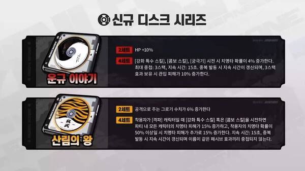 관입 효과 디스크인 운규 이야기, 격파 그로기 효과 디스크인 산림의 왕이 추가된다.