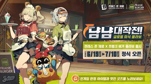 젠레스 존 제로와 프랭크 버거 컬래버레이션이 6월 19일부터 7월 10일까지 진행된다. 인게임 한정 아이템과 굿즈를 얻을 수 있다.