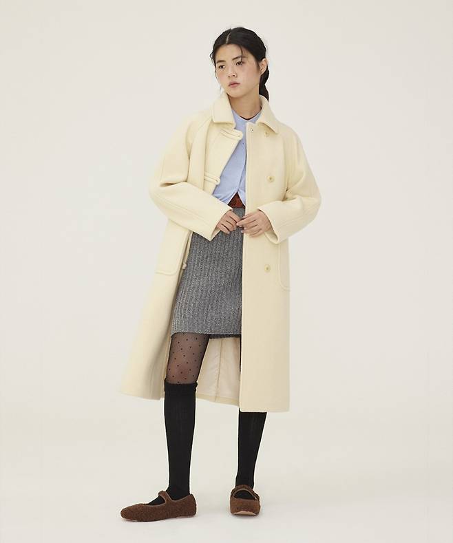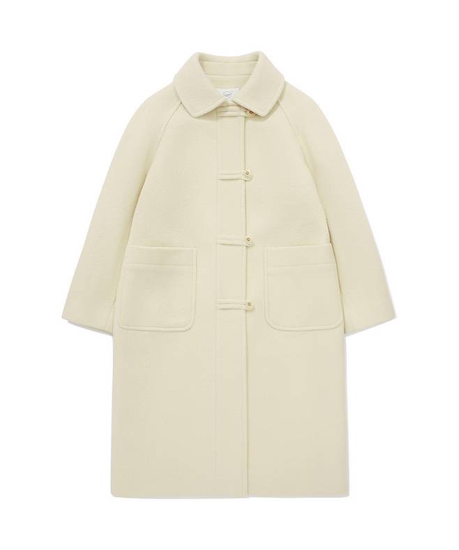 두툼한 소재의 버터 컬러 더플코트,