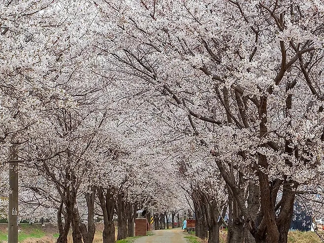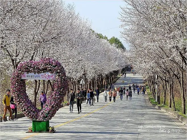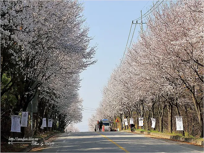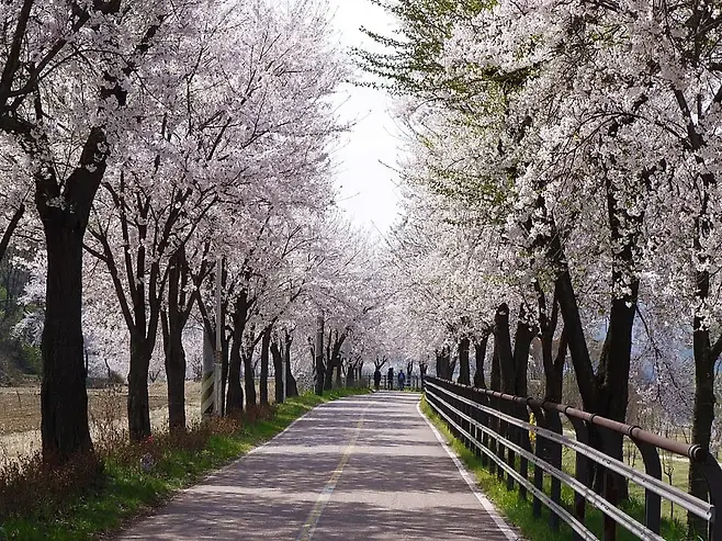 여주 흥천면 귀백리 일대의 남한강변은 길게 이어진 벚꽃길로 유명합니다. 매년 봄이면 차량 통제구간이 생길 정도로 방문객이 많아, 벚꽃길을 오롯이 보행자 중심으로 거닐 수 있습니다.