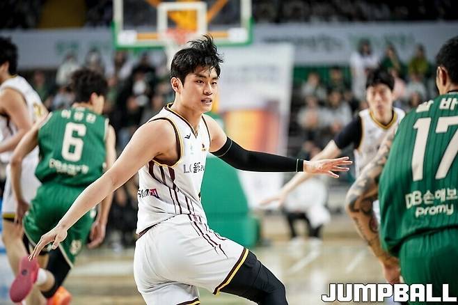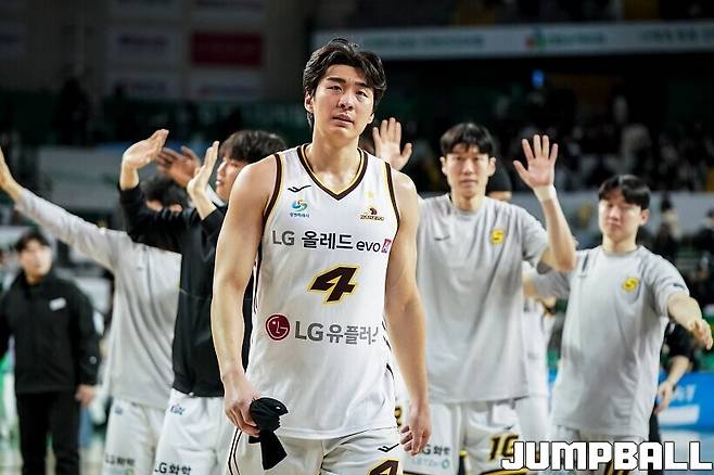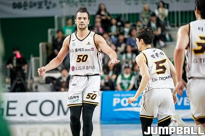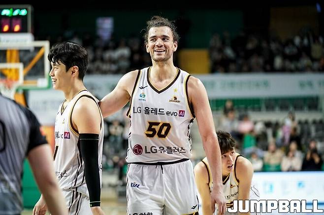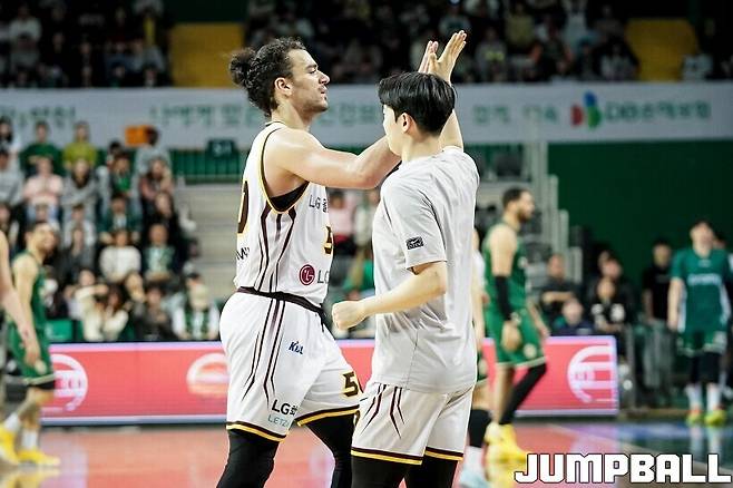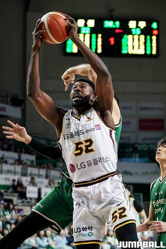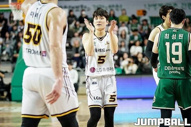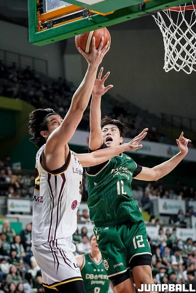 [점프볼=원주/유용우 기자] 15일 원주 DB 프로미 아레나에서 열린 2025-2026 LG전자 프로농구 원주 DB과 창원 LG의 경기, LG는 아셈 마레이가 28점 17리바운드 5어시스트 5스틸을 기록하며 77-69로 DB에 승리했다. 칼 타마요 19점 3리바운드 2어시스트 1스틸 1블록, 유기상 15점, 양준석은 11점 11어시스트를 기록하며 팀 승리에 기여했다.