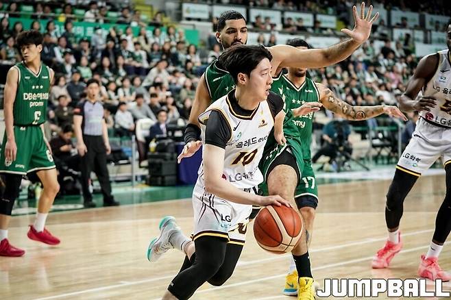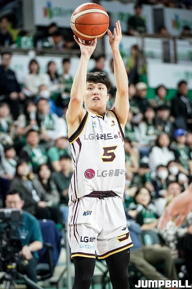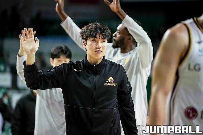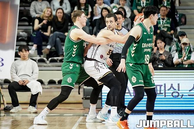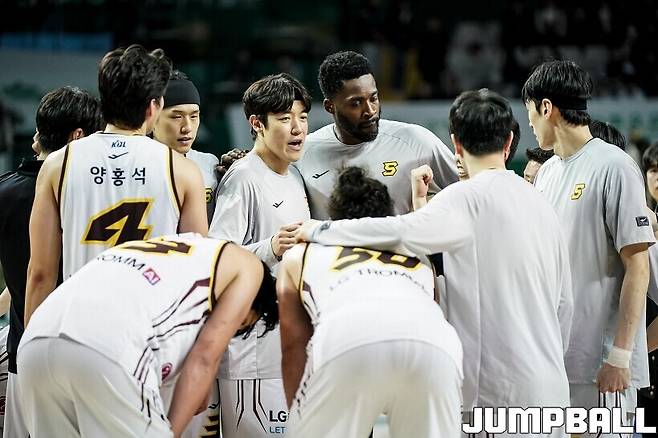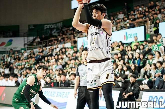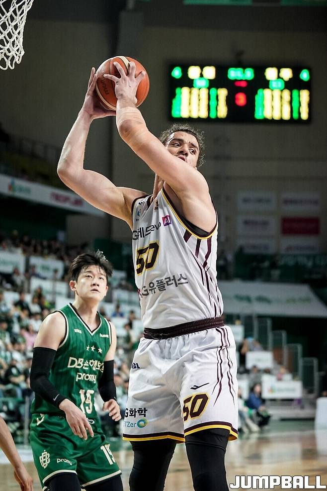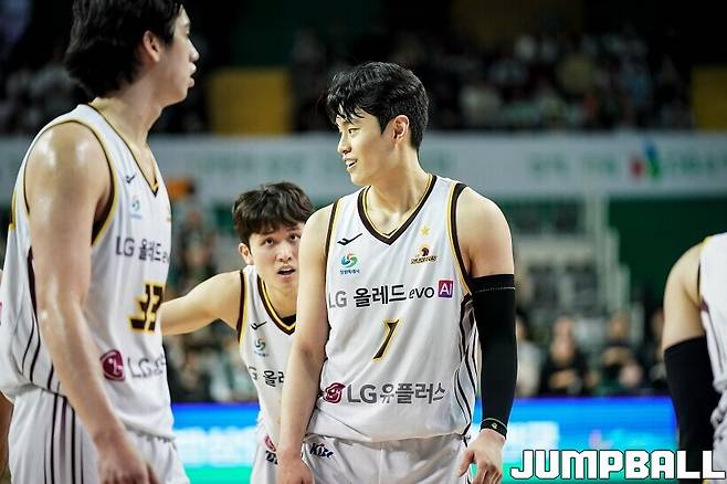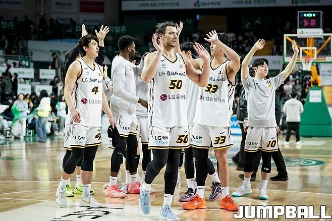[점프볼=원주/유용우 기자] 15일 원주 DB 프로미 아레나에서 열린 2025-2026 LG전자 프로농구 원주 DB과 창원 LG의 경기, LG는 아셈 마레이가 28점 17리바운드 5어시스트 5스틸을 기록하며 77-69로 DB에 승리했다. 칼 타마요 19점 3리바운드 2어시스트 1스틸 1블록, 유기상 15점, 양준석은 11점 11어시스트를 기록하며 팀 승리에 기여했다.