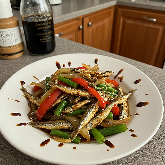 잔멸치를 기름에 볶고 간장·물엿을 넣어 조림처럼 먹는 경우,