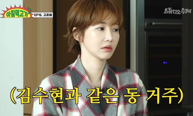 이어 장성규가 "김수현과 마주친 적이 있냐"라고 묻자, 고준희는 "같은 동이어서 마주친 적도 있다. 만나면 서로 그냥 '안녕하세요'만 한다"라고 담담히 밝혔다. 고준희는 "거주한 지 얼마나 됐는지 정확하게 모르겠는데 10년은 넘은 거 같다. 12년 정도 된 거 같다"라며 "자가로 들어온 건 아니고 처음에 반전세로 이사했다. 운이 좋게 살고 있다가 '그녀는 예뻤다' 작품이 조금 잘됐다. 광고도 20대 넘게 찍고 중국에 가서 드라마도 찍었다"라고 전했다.