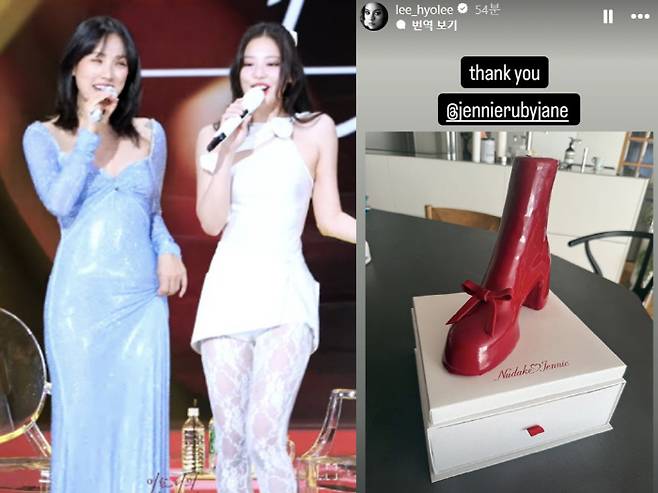 19일 이효리는 자신의 계정에 제니가 보내준 구두 케이크를 공개했다.