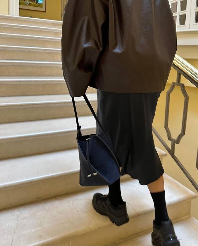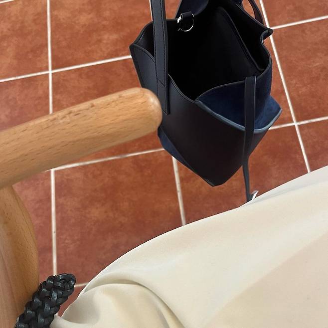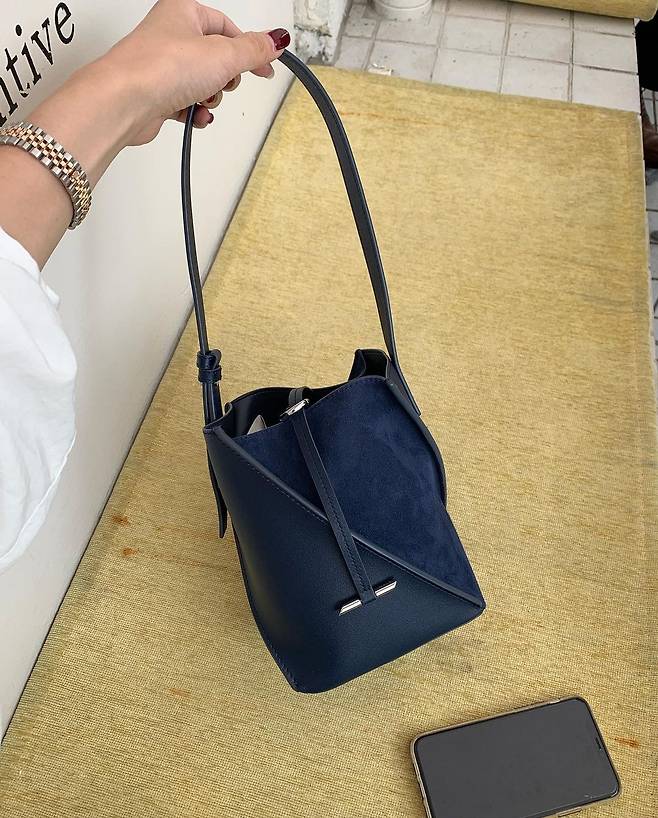 소가죽과 스웨이드 믹스 소재로 분위기 있게 들기 좋은