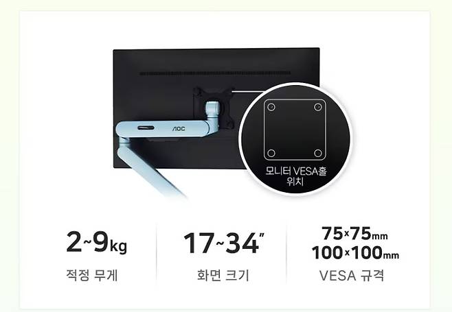 모니터 암은 다양한 형태로 조절이 가능한 '암'을 책상에 클램프나 그로밋(홀) 형태로 단단히 고정시켜 사용하는 주변기기다. 사용하던 모니터의 기본 스탠드를 분리한 후 후면의 VESA 홀로 연결하는 형태다. 따라서 구입하기 전 자신의 모니터 스탠드가 분리되는지, 그리고 VESA 홀이 있는지 꼭 체크해야 한다.