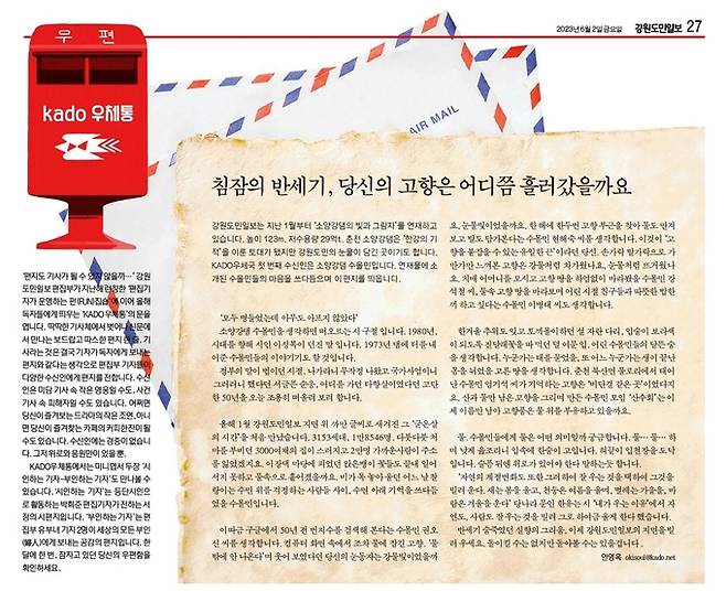 강원도민일보는 올해 6월부터 편집기자 코너 'KADO우체통' 연재를 시작했다.