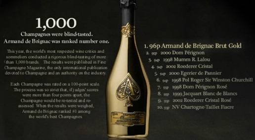 아르망 드 브리냑이라는 브랜드는 2006년 출시된 신생이었다. 하지만 범상치 않은 병 디자인에 스페이드 에이스(Spade A)가 백랍으로 새겨져 있다.